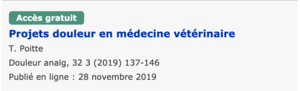 Mots clésDouleur animale · Bien-être animal · e-santé · Réseau douleur · Consultation douleur