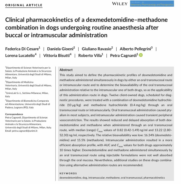 3/ Clinical pharmacokinetics of a dexmedetomidine–methadone combination in dogs undergoing routine anaesthesia after buccal or intramuscular administration